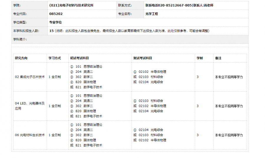 材料科学与工程、光学工程、电子科学与技术、工程[专]专业的招生信息推荐