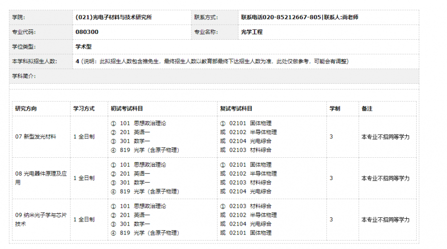 华南师范大学(211)——光电子材料与技术研究所2019年硕士研究生招生调剂信息