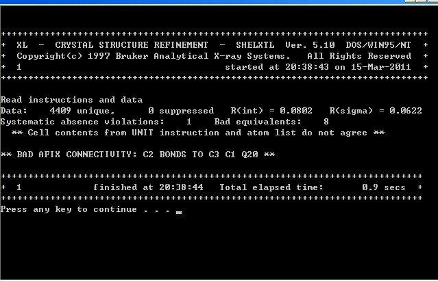 这个单晶原先是求人帮我解析的。cif文件是正确的,可用Shlex运行hkl文件确出现错误了。不知当时那个人是怎么做出来正确cif文件的。