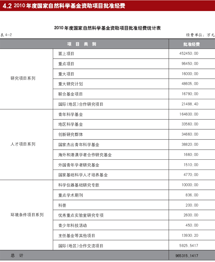 国家自然科学基金2010年度经费概况