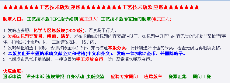 工艺技术版开版以来根据虫友的需要又开设了“膜技术”和“煤化工工艺”标签。为极具潜力的膜技术行业和正在发展的煤化工工业提供了一个交流平台。