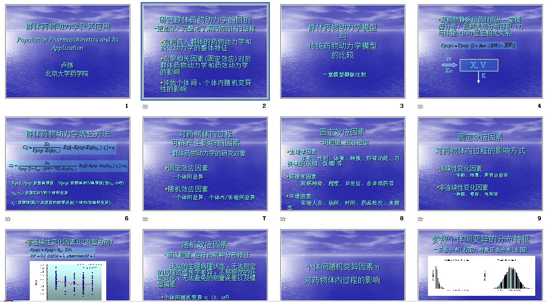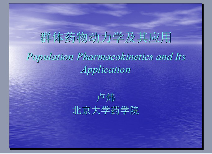 【课件】群体药物动力学及其应用(北京大学药学院) Population Pharmacokinetics and Its Application 欢迎下载,下载请回帖!