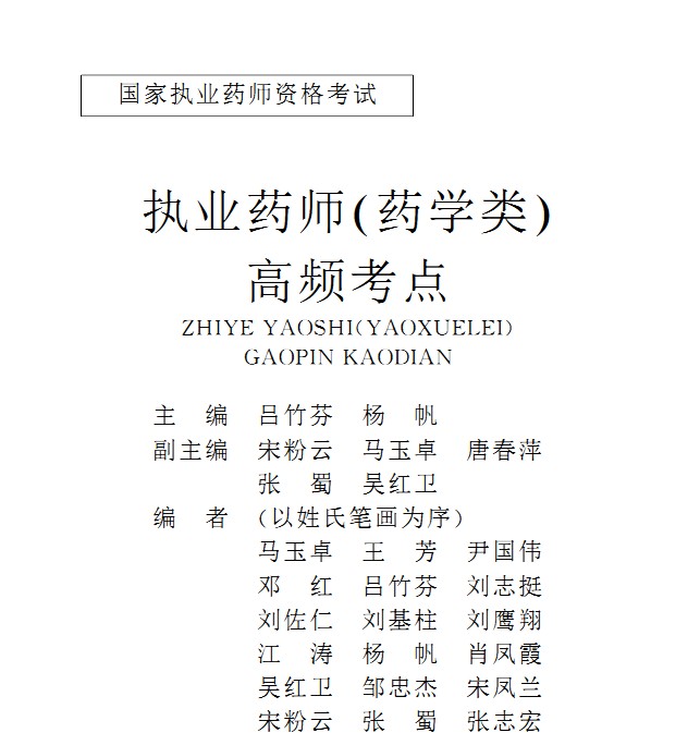 包括药理学、药物分析、药物化学、药剂学、药学综合技能、药事管理。 [ 来自科研家族 药物化学家族 ] [ Last edited by flmzxj on 2011-10-9 at 09:51 ]