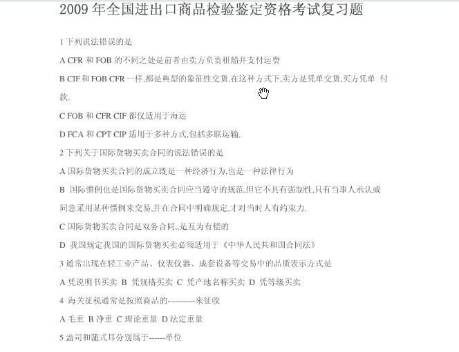 【习题资源】09年全国进出口商品检验鉴定资格考试复习题