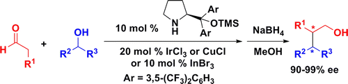 The unprecedented cooperative systems involving a diarylprolinol silyl ether with various Lewis acids have been found to effect the highly enantioselective intermolecular ¦Á-alkylation of aldehydes. A wide variety of aldehydes and alcohols can be transformed into the desired highly functionalized aldehydes in high yields, excellent enantioselectivities, and good diastereoselectivities at room temperature under mild conditions.