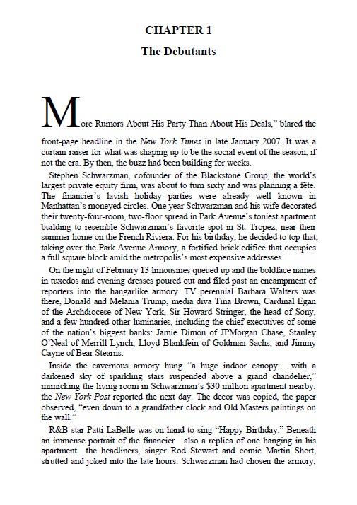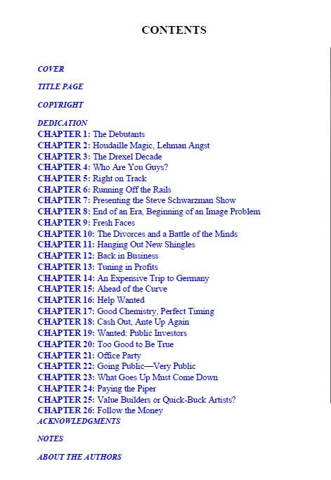 凯里和莫里斯是两位资深的私募股权记者,他们在书中描述了黑石集团所参与过的每一笔交易,时间可以追溯到公司共同创始人、雷曼元老彼得o彼得森和施瓦茨曼挨家挨户上门筹资的1985年。 本书不仅仅是个人传记,它还为读者对私募股权业进行一番全面彻底的检视,作者在书中奉上的是一堂百科全书式的收购案例大课。
