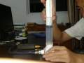 将两条棉线固定于一根竿之上(图一),并制作一个纸筒(图二)。在一个空气流动不大的地方进行此实验。