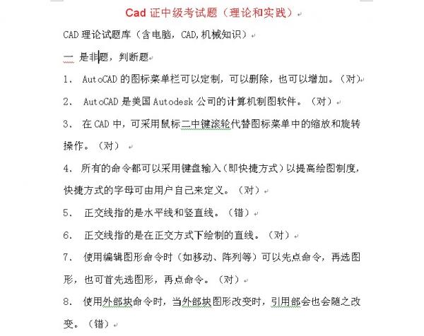 Cad证中级考试题(理论和实践) Cad证中级考试题(理论和实践).jpg [ Last edited by ANDPing on 2012-11-3 at 19:00 ]