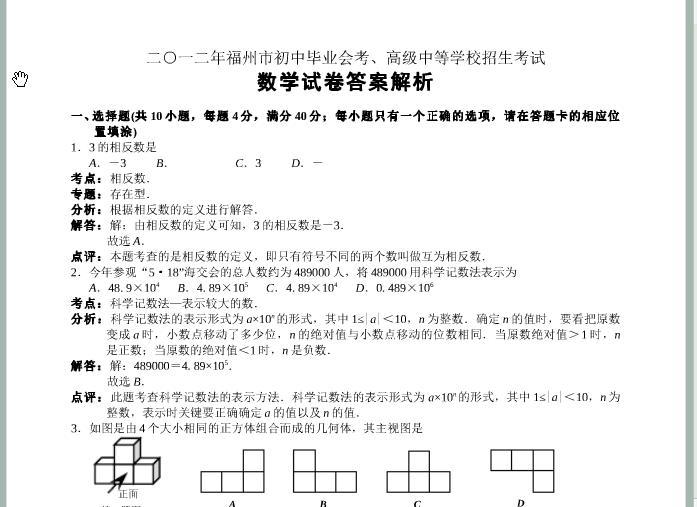 【中小学类】2012年福建省福州市中考数学试题(含解析).doc
