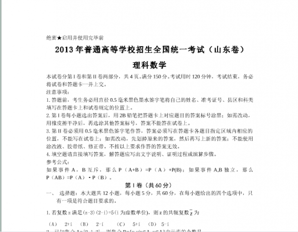 2013山东高考数学试题.doc [ 来自小组 夜行侠部落 ] [ Last edited by zhweijun88 on 2013-6-9 at 12:35 ]