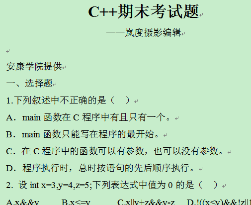 C++期末考试题.doc [ 来自小组 梦里的棉花糖 ] [ Last edited by zhweijun88 on 2013-6-9 at 12:38 ]