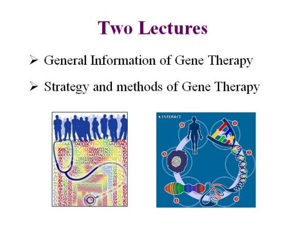 Two Lectures about General Information of Gene Therapy and Strategy and methods of Gene Therapy.