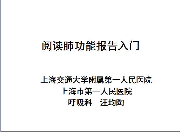 【课件】上海交通大学附属第一人民医院——《肺功能阅读报告》.ppt