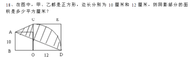 甲、乙都是正方形,边长分别为 10 厘米和 12 厘米,则阴影部分的面积是多少 截图00.png 返回小木虫查看更多