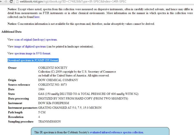 美国国家标准局 [高光部分 = 下载用链接] https://webbook.nist.gov/cgi/cbo ... amp;Index=1#IR-SPEC -------------------------- 美国国家标准局 - 放大图.jpg 美国国家标准局 - 资料来源 + 下载方法.jpg
