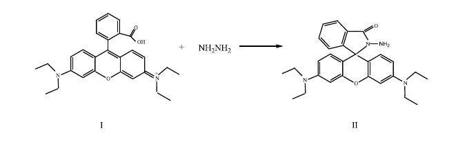 为了制备罗丹明的肼化产物,网上有不少方法,其中也有加入POCL3后过柱提纯的,但是我们实验室貌似没有那样的条件,只能选择比较简单的一种方式,使用罗丹明B的乙醇溶液直接与过量的水合肼反应,看到之前的前辈一致提到这样的产率不高,但是环境限制只能使用这种方法。