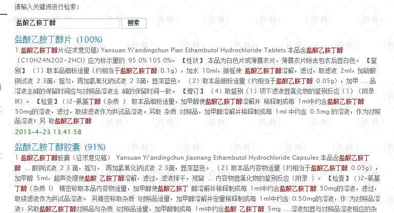 (4)“盐酸乙胺丁醇片”只在《中国药典2010版》有,《中国药典2010版增补版》没有,但是药典委员会官网——数据查询,能够查到它的最新标准(带“征求意见稿”字样),并且与“盐酸乙胺丁醇”在《中国药典2010版增补版》方法是一样的,那么盐酸乙胺丁醇片是应该按照那个标准检验呢?