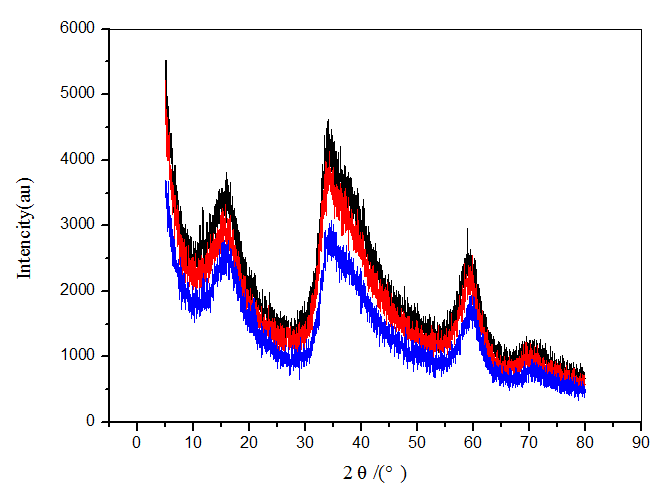xrd的图谱很杂,可能你的晶体生长的都不是很好,建议你改进下实验方案。你可以把你制备的样品高温煅烧下,再去测下xrd应该峰就会出来了。
