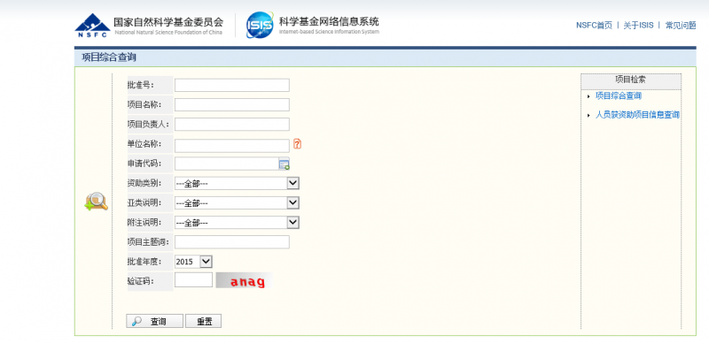 二:ISIS 项目检索项目综合查询,输入内容同一。注,人员获资助项目查询现在还查不到
