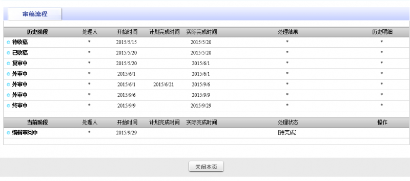 这是我第一次投核心,不知道文章发表的过程,不过据说外审后会有专家的修改意见,然后让我修改后再审,最后才终审或编辑审阅。