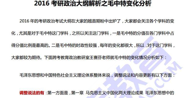 【已查无重】2016考研政治大纲解析之毛中特变动知识点分析,玩转2016考研政治!