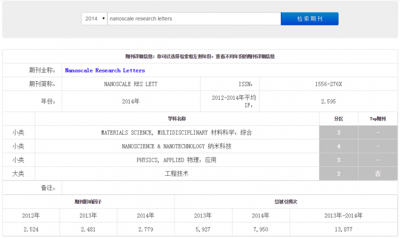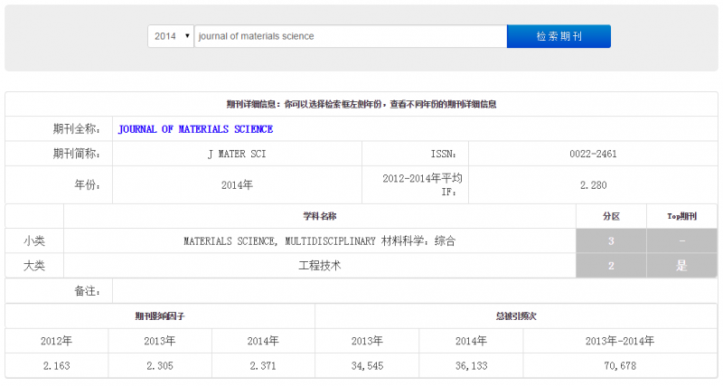 听说2015年中科院最新JCR分区出来了,希望哪位大侠告诉我nanoscale research letters和journal of materials science两个期刊2015最新的大类工程技术类的大类分区,涉及到能否按时毕业,只要2015最新的工程类大类分区,nanoscale research letters和journal of materials science,谢谢!