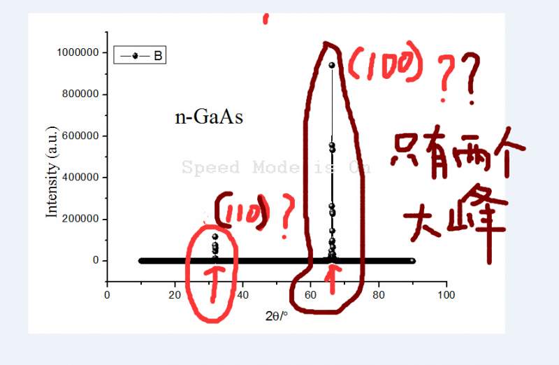 图示为一个n-GaAs片的XRD数据,其中晶相主要有两种(100)和(110)。