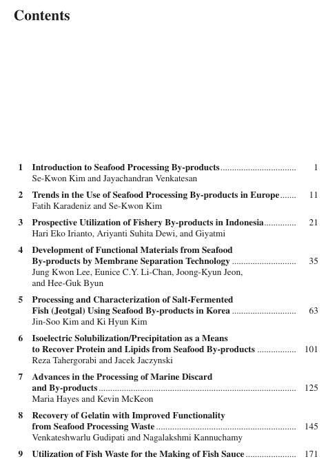 Seafood Processing By-Products Editors: Se-Kwon Kim ISBN: 978-1-4614-9589-5 (Print) 978-1-4614-9590-1 (Online)