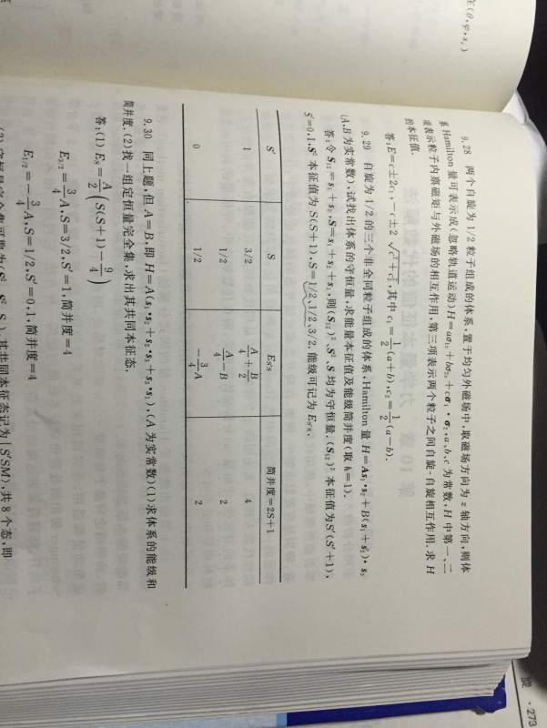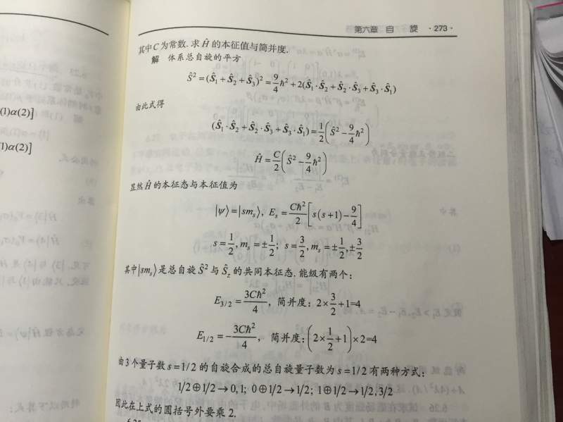 s^2的本征值有两个,对应于s=1/2和3/2的请客,其中3/2的情况对应四个不同的波函数,sz=3/2,1/2,-1/2,-3/2,我想你主要问题是在为什么s=1/2的情况也是四重简并而不是二重,这是因为s=1/2也有两种耦合情况,即0与1/2和1于1/2也就是s^2和sz的共同本征态依然是简并的还需要其他力学量才能区分开来