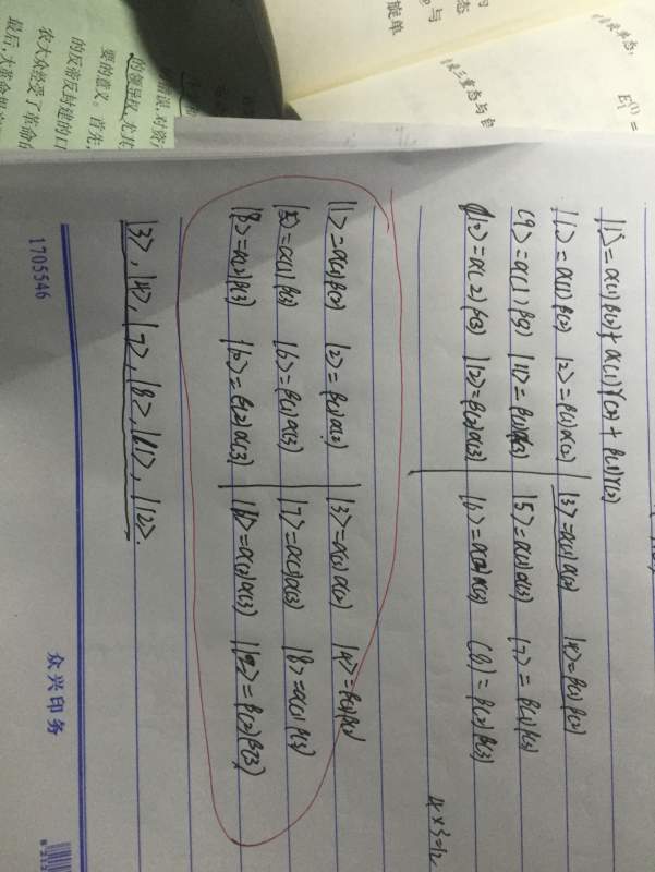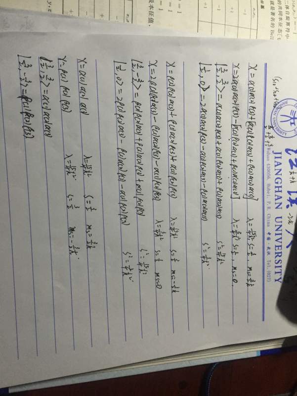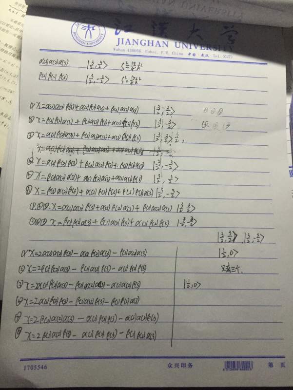 我写出其中的4个了,是不是这个。13年中科院的答案也应是这个吧?还有一种方法我不会如何用2个已经耦合过了的再与第三个粒子耦合啊
