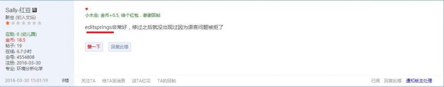 后来文章发表的过程就很顺利啦!https://www.editsprings.com/