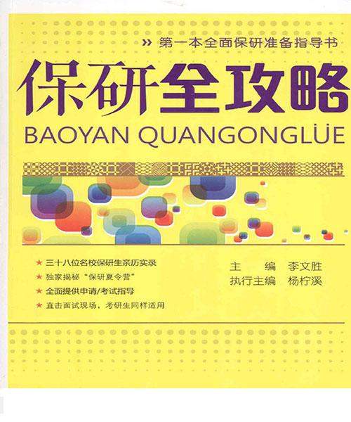 全书既有宏观全面的保研指导,又涵盖了几十所不同院校、不同专业的保研生文章,内容丰富,视角多样。这些梦想追寻者的文章,用他们保研成功的经历为希望保研的优秀本科生提供全面的经验与教训,极具操作性和借鉴性。