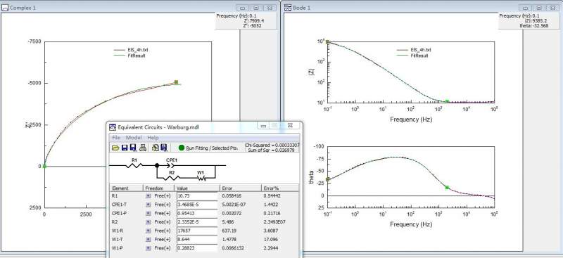 EIS阻抗谱拟合,初次使用,不知道选择这样的等效电路是否可以,误差是否满足要求呢?谢谢。
