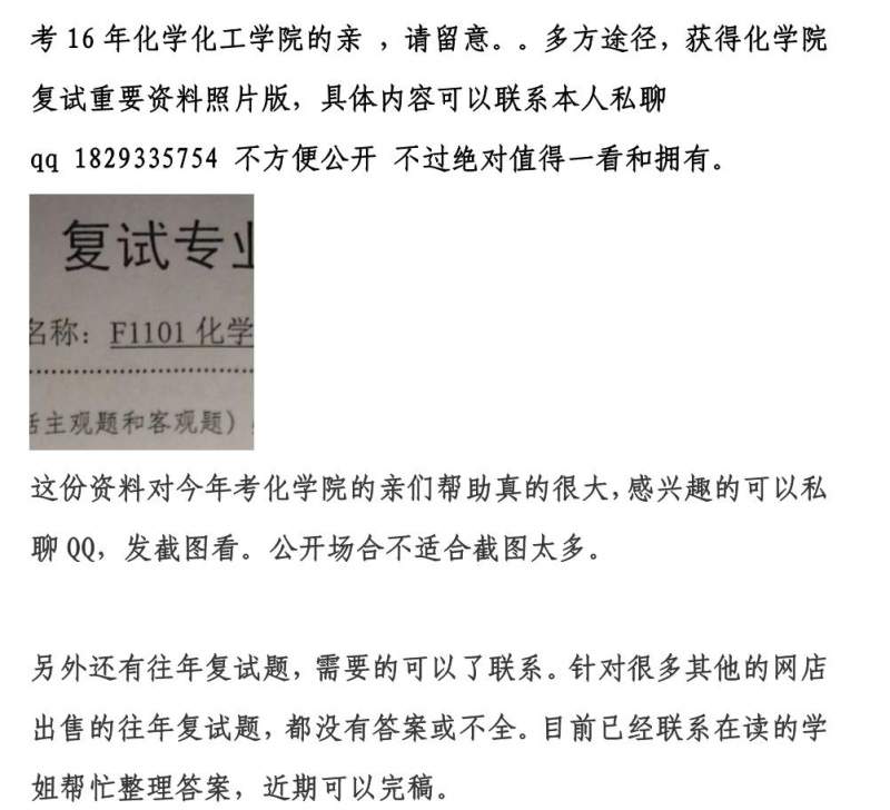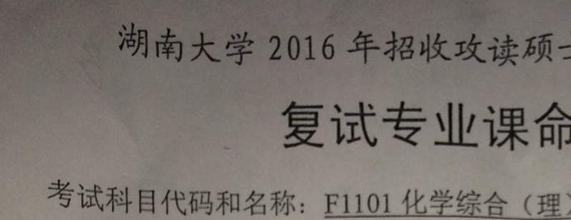 湖南大学 化学化工学院 16复试资料 分享