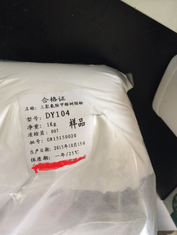 各位虫友大家好,希望大家能够解决我的问题,是这样,我目前想溶解三聚氰胺-甲醛树脂粉,但是我目前溶解出来的三聚氰胺-甲醛树脂粉是白色乳膏状的东西,不是人造板企业使用的那种无色透明的,还有一定粘度状态,我溶解了两次,一次是在凉水中溶解,也就是采用自来水直接溶解,溶完就是白色乳膏状态,如果再加入水,搅散以后好像蛋清一样,另一次是用热水溶解,大概用了60℃左右的热水,溶解完后放入了70摄氏度的水浴锅中,一段时间以后发现是无色透明的,但是我通过搅拌以后发现,基本上粘度没有,和搅拌水差不多,因此,我想问问大家,这个东西到底怎么溶解,我溶解的时候三聚氰胺-甲醛树脂粉:水的比例大概是1:1-1:1.2,即50g三聚氰胺甲醛树脂粉,加入的水的质量是50-60g。图中是我目前用的三聚氰胺-甲醛树脂粉,涂色的地方是生产企业名称,为避免不必要的误会,将企业名称涂色了https://muchong.com/bbs/viewthread.php?tid=3922756 这篇主题中,有人说用三乙胺调节pH,我不是学化工的,不懂这个,所以不清楚原理,其次是实验室也没有这个药品,因此也没有试过