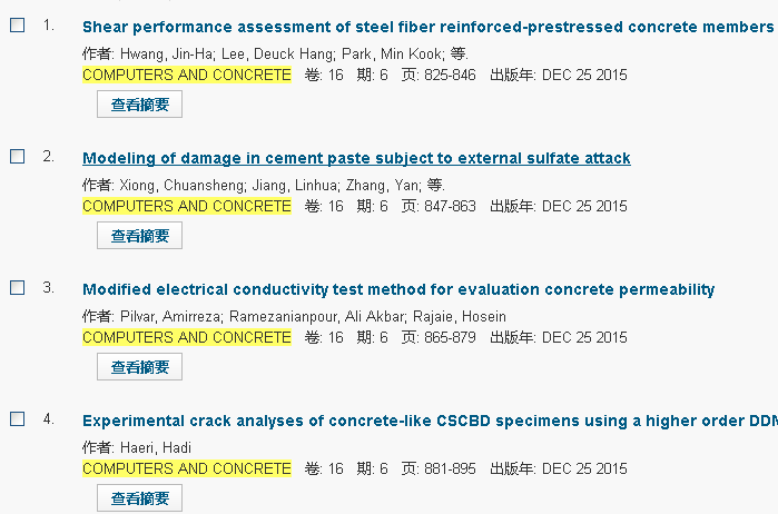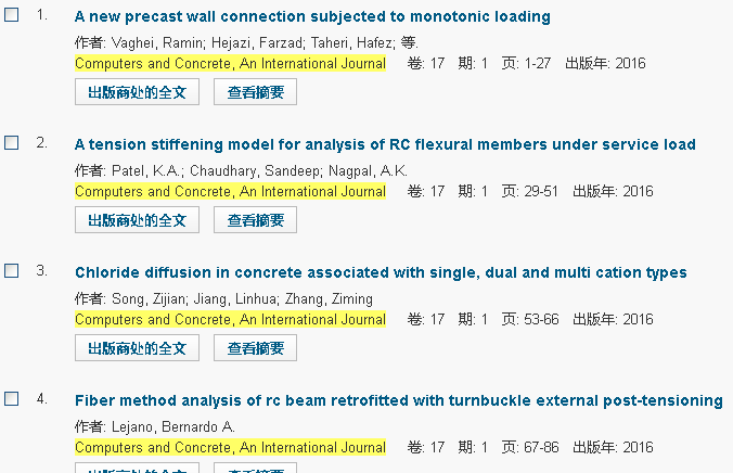 然而期刊名咋变成这样了,而且单搜Computers and concrete却搜不到2016年最新这一卷,然而Computers and concrete, an international journal和Computers and concrete期卷号却是连着的。如下图所示