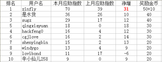 另外,特设一个最快进步奖,即应助数量较上月有明显提升的,可获得10金币的奖励。