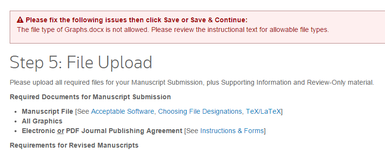 请教各位大神,在analytical chemistry 上投稿时,上传的Graphic for manuscript(应该就是单独一个文档的图表)是什么格式啊?我上传的是word, 他提示格式不对,怎么办?如图!!! 另外,知道上传那一步骤的,可以详细说明一下 问题.png 返回小木虫查看更多