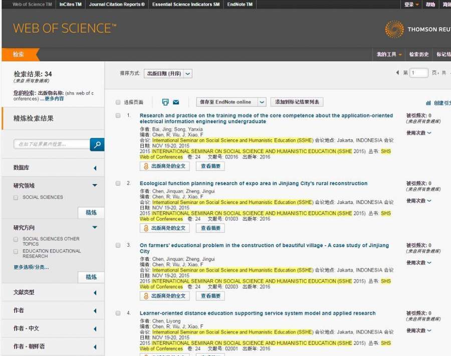 SSHE2015,国际社会科学与人文教育研讨会成功检索了