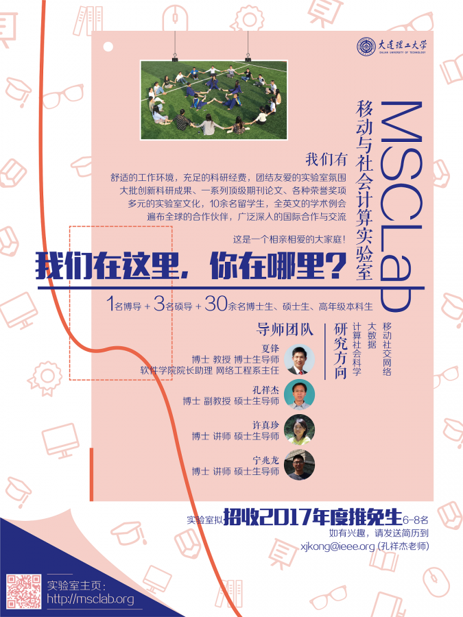 大连理工大学移动与社会计算实验室招收2017年度推免生