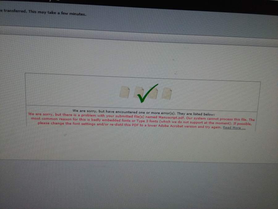 小弟打算投一篇JMCC ,文件上传完毕后,无法生成最终的PDF文件,起初以为是不是文件太大,于是将文件减小,大文件还是小文件总是这样的界面,无法生成pdf ,哪位大神有过类似的经历,麻烦指导指导小弟,谢谢了