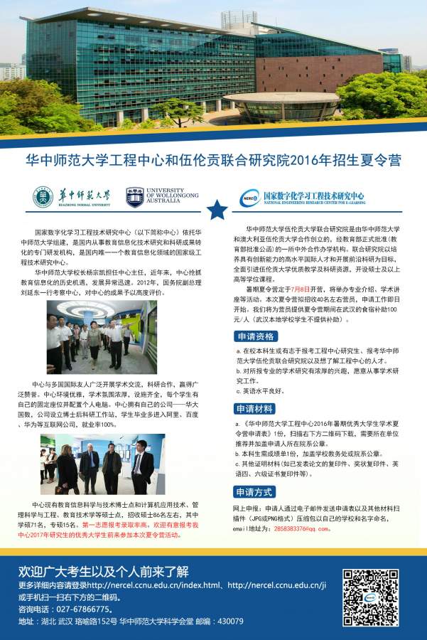 华中师范大学国家数字化学习工程技术研究中心研究生招生夏令营欢迎您