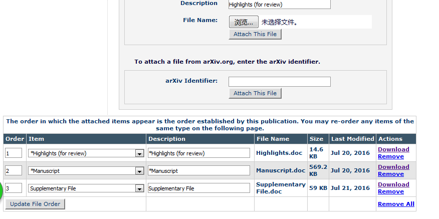 你的文件都已经上传成功了,后面有显示大小以及可以下载和删除就表明附件已经嵌入。PDF要等到最后一步才会生成 ,
