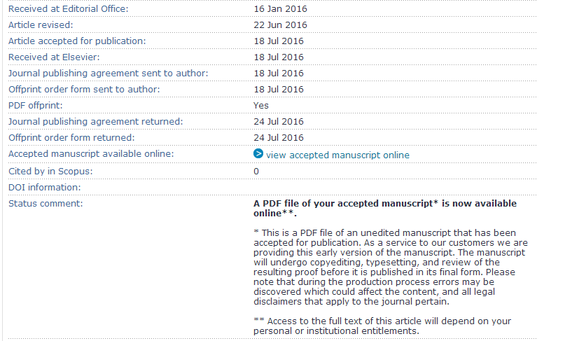 艾斯维尔出版社的,接收后,并且回复了proof邮件,并收到了Corrections received邮件,是不是后面就没事了?一般多久online?谢谢 文章状态.png 返回小木虫查看更多