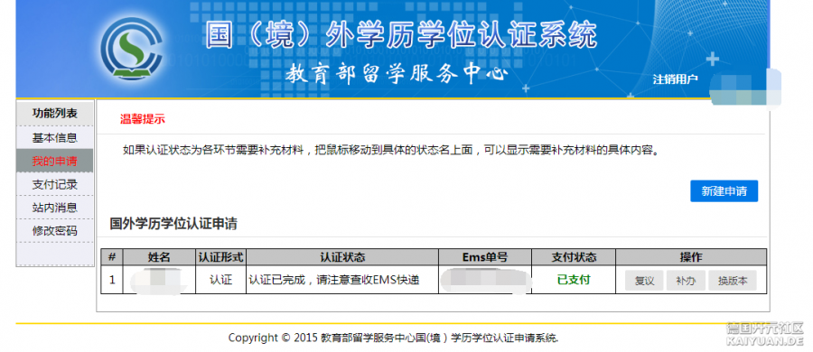 3、2015年5月教育部留学服务中心对国外学历学位认证在线申请系统及港澳台学历学位认证在线申请系统的升级工作已经完成。2015版新系统将统一采取网上支付的缴费方式。另外新的学历学位认证书也与过去大不一样,变成正副本一模一样而且增加了二维码。