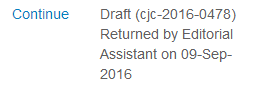 这个是你刚提交的页面吧,应该是没有完成投稿。需要修改某些格式什么的,修改意见在通信作者邮箱里…点continue可以继续完成投稿。