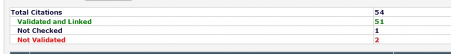 论文现在已在审稿人手中,后台系统中有“View Reference Checking Results”选项,检查的结果中有“Not Checked”1篇和“Not Validated”2篇(如下图),系统中是这样解释的:Reference checking is done for journal citations. If the journal citation has a PubMed or CrossRef link, it has been validated. If 'Not Checked' is displayed, either the citation could not be identified as a journal citation, or the linking service did not return results. If 'Not Validated' is displayed, the journal citation could not be validated on the linking service.
