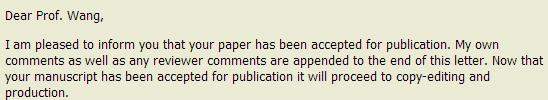 各位虫友,小弟前段时间投稿中了之后,投稿系统显示如下图片中的信息(图片1),并且发邮件通知论文接收(图片2)(两个审稿人提了审稿意见),但是在这期间也没让论文大修或者小修请问各位大神,接下来需要做什么??? 360截图20161105093636163.jpg 360截图20161105094019201.jpg 返回小木虫查看更多