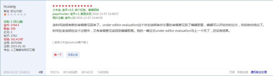 4.第三个问题:已经变为Under Editor Evaluation状态后,给消息的速度是快好还是慢好?