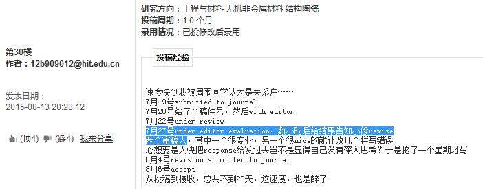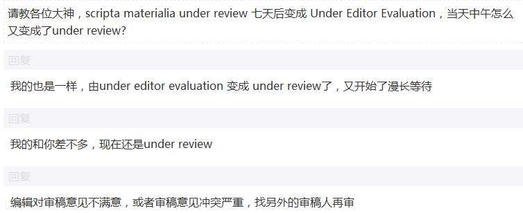 e.第一次变化到under editor evaluation时,编辑不立刻做出判断,那么至少可以说明根据已返回的意见来看,稿件仍然有值得录用的价值,从这一点来看,没有消息就是好消息;